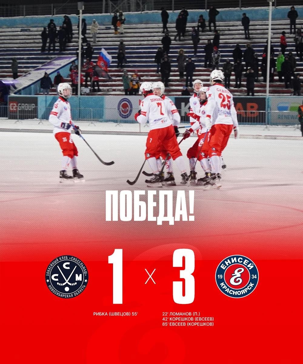 В матче чемпионата России по хоккею с мячом красноярский Енисей на выезде обыграл новосибирский Сибсельмаш со счетом 3:1.