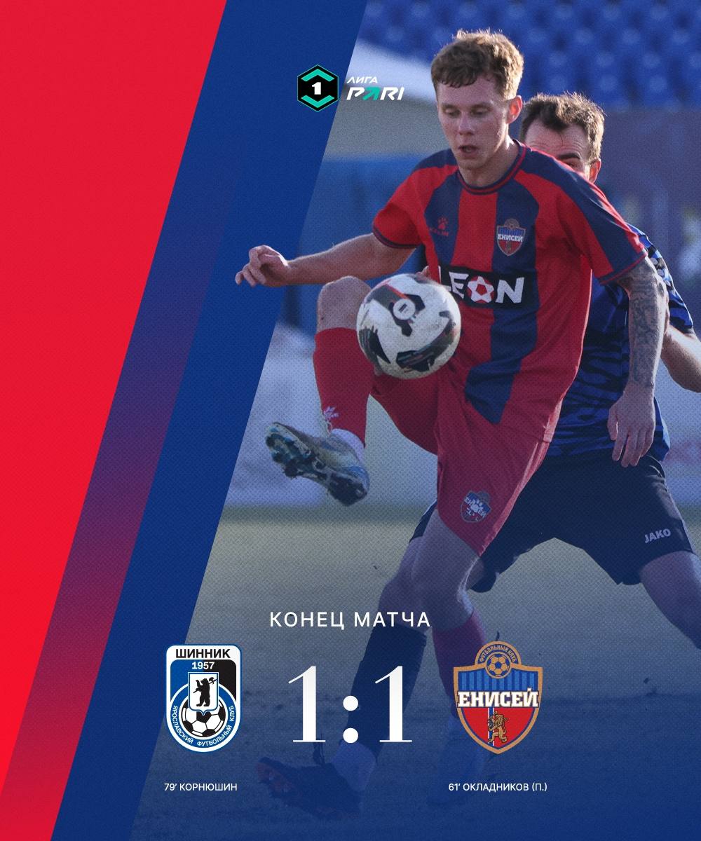 Футболисты красноярского «Енисея» в матче 24-го тура Первой лиги на выезде сыграли вничью с ярославским «Шинником» со счетом 1:1.