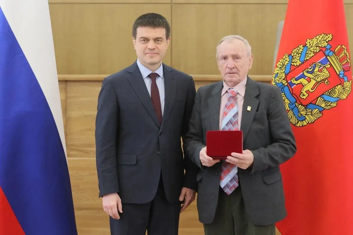 За многолетний добросовестный труд, большой вклад в развитие физической культуры и спорта в крае знак отличия «За трудовые заслуги» получил Владимир Чертовиков – член совета региональной федерации по прыжкам на лыжах с трамплина и лыжному двоеборью.