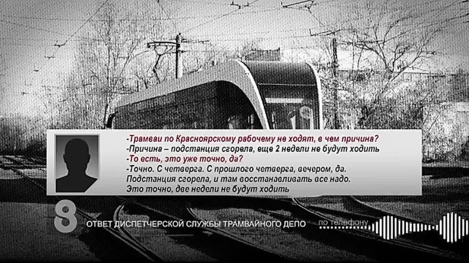 И ЕЩЕ НЕ БУДУТ ХОДИТЬ ДВЕВ Красноярске с 16 октября остановлено движение трамваев по проспекту имени газеты «Красноярский рабочий». Причина – авария на тяговой подстанции. Когда устранят причину – неизвестно, но диспетчерская...